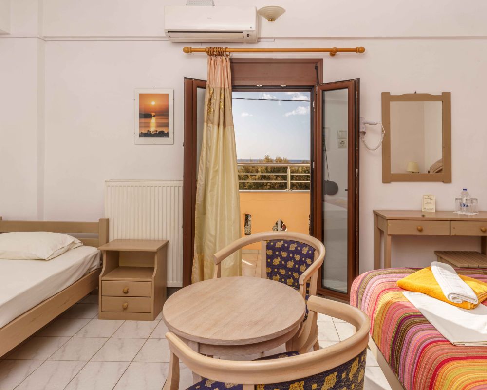 Entspannen Sie in den Doppelzimmern des Alexandros Hotels und gönnen Sie sich den Komfort, mit dem Sie sich wie zu Hause fühlen werden. Die Zimmer sind komplett mit Bad, WC, Heizung, Telefon, Kühlschrank, Klimaanlage und WLAN ausgestattet.