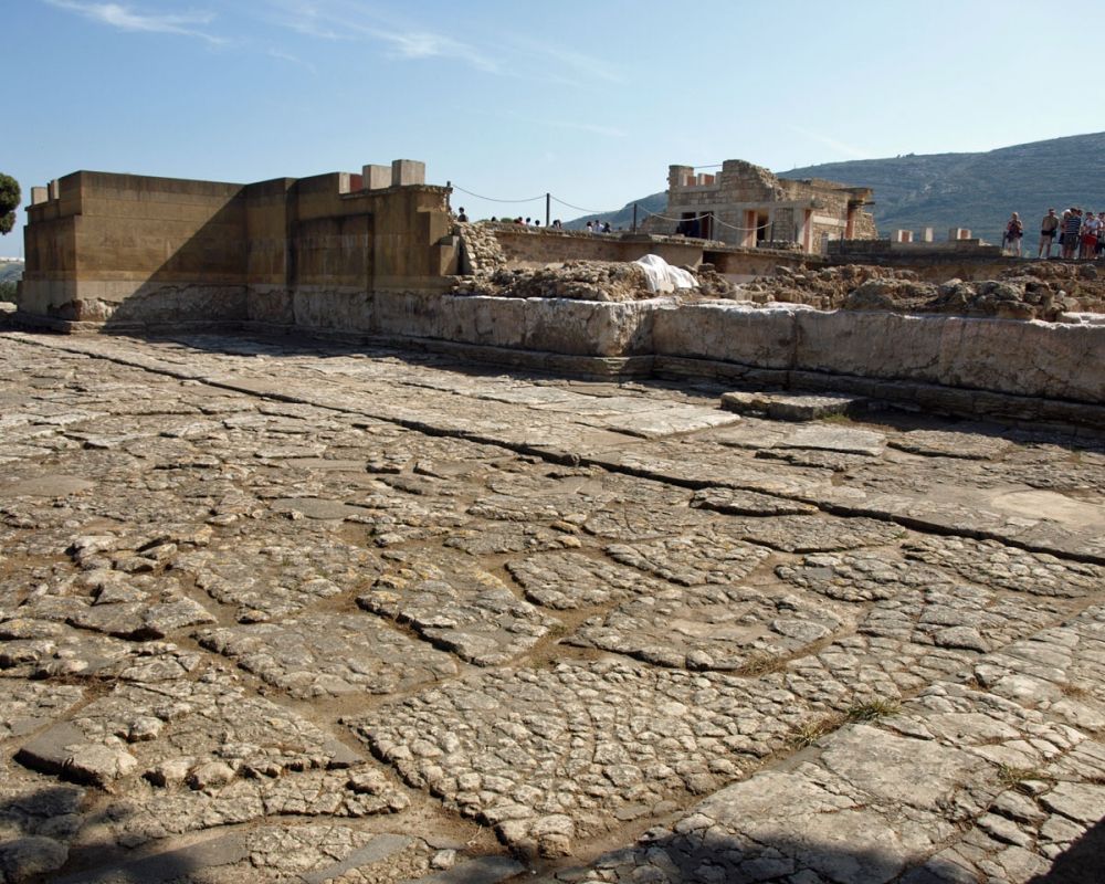 Knossos war schon während des akeramischen Neolithikums besiedelt. Älteste Siedlungsspuren der bis zu acht Meter mächtigen Siedlungsschichten stammen aus dem 4. Jahrtausend v. Chr. Einwanderer, vielleicht aus Kleinasien, kamen im frühen 3. Jahrtausend v. Chr. nach Kreta. Am Ende des 3. Jahrtausends v. Chr. entwickelten sich kleinere Königreiche auf der Insel, wie man aus den größeren Palastanlagen in Phaistos, Malia, Knossos und Kato Zakros schließt. Der Palast von Knossos wurde zwischen 2100 und 1800 v. Chr. am Ort der neolithischen Besiedlung errichtet. Knossos war besonders groß, reich und prächtig.